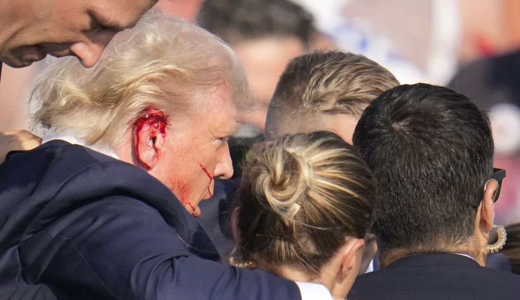 The former president appeared to be shot in the ear before being rushed to safety but was not seriously wounded.