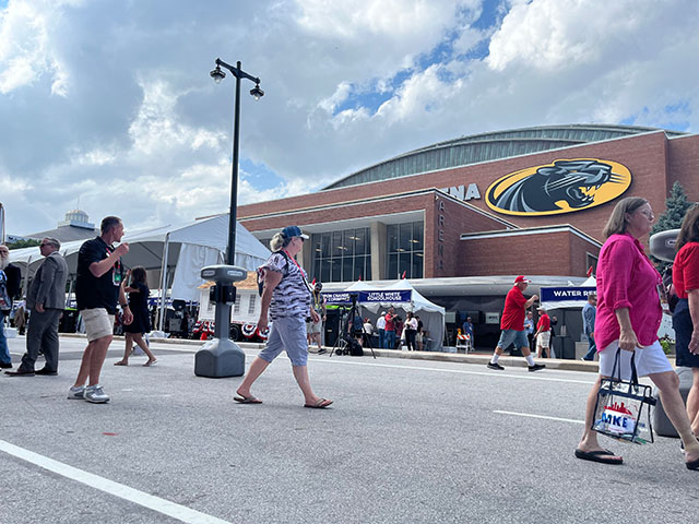 The scene outside Panther Arena in Milwaukee where Breitbart News interviewed several subjects for this story. (Nick Gilbertson/Breitbart News)[/caption]